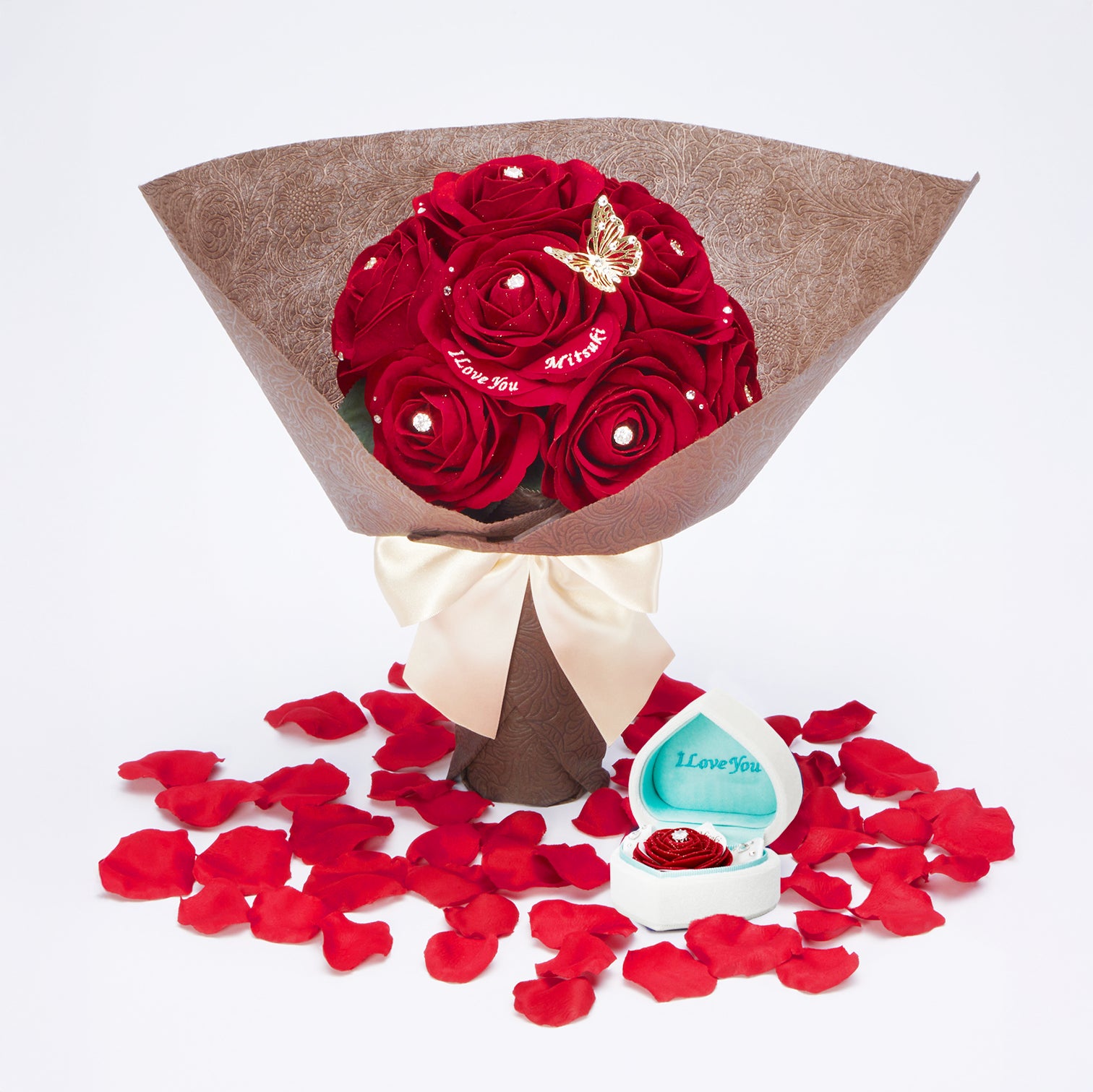プロポーズ演出に迷った方にオススメ! 永遠に枯れないバラのプロポーズセット プロポーズに人気の「真っ赤な12本のバラの花束」と、指輪がなくても箱パカできる「プロポ…